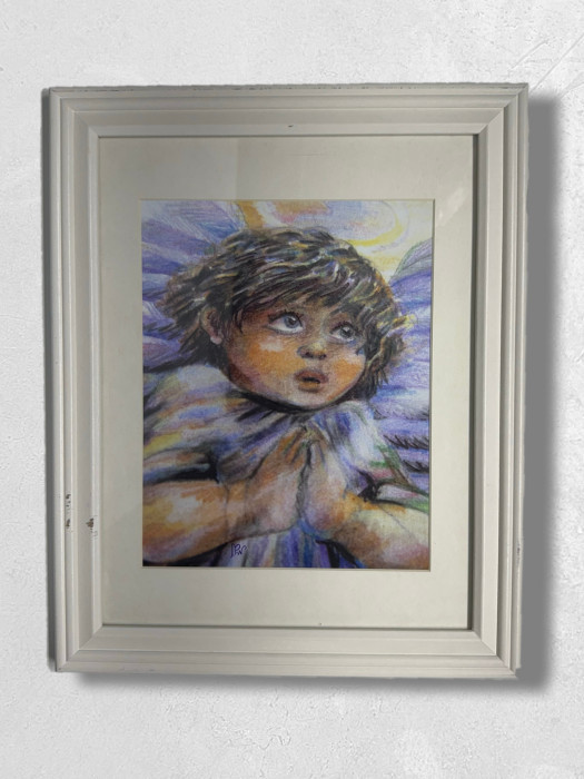 Angel print with Frame I am a retired art teacher that has loved to draw and paint most of my life. I have a master's in spiritual psychology which taught me that art has healing qualities for the heart and soul. I am either teaching, counseling or doing service with art. It keeps me joyful and young....